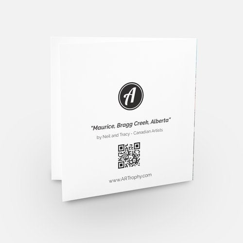 This square-format greeting card showcases a vibrant reproduction of original collaborative artwork by Neil & Tracy of ARTrophy. Known for their fluid lines and nature-inspired compositions, ARTrophy brings the beauty of the Canadian landscape to life with a unique, shared perspective on a single canvas.